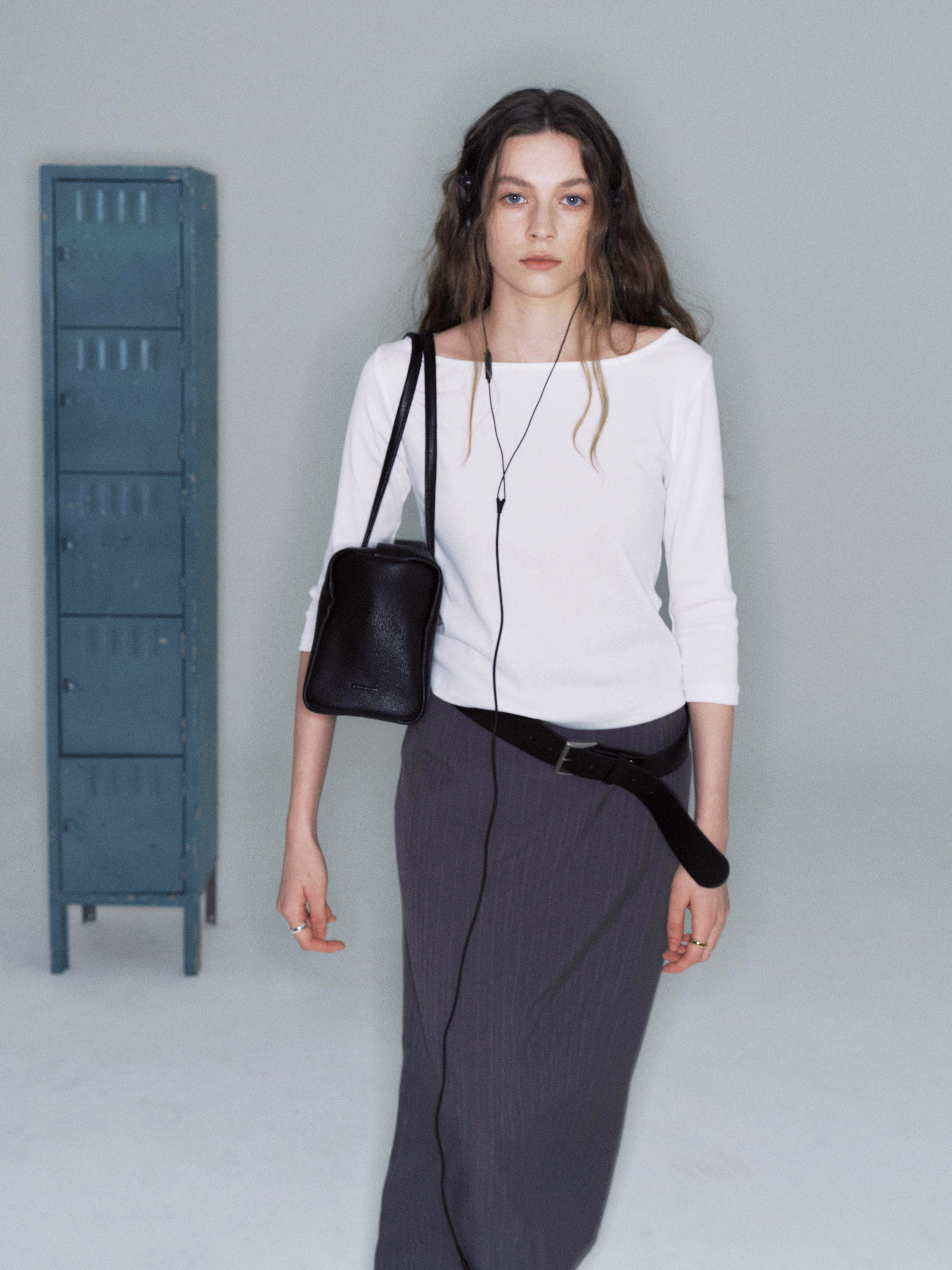 力を抜いたように自然に流れる、スリムなシルエットが魅力のコイバッグ。