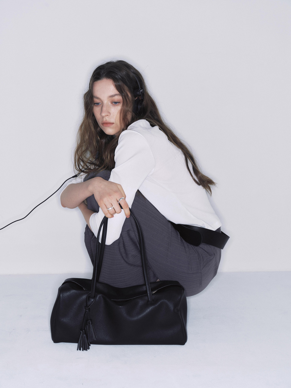 バッグのサイドに施されたタッセルディテールが、シンプルなデザインにさりげないアクセントを添えます。