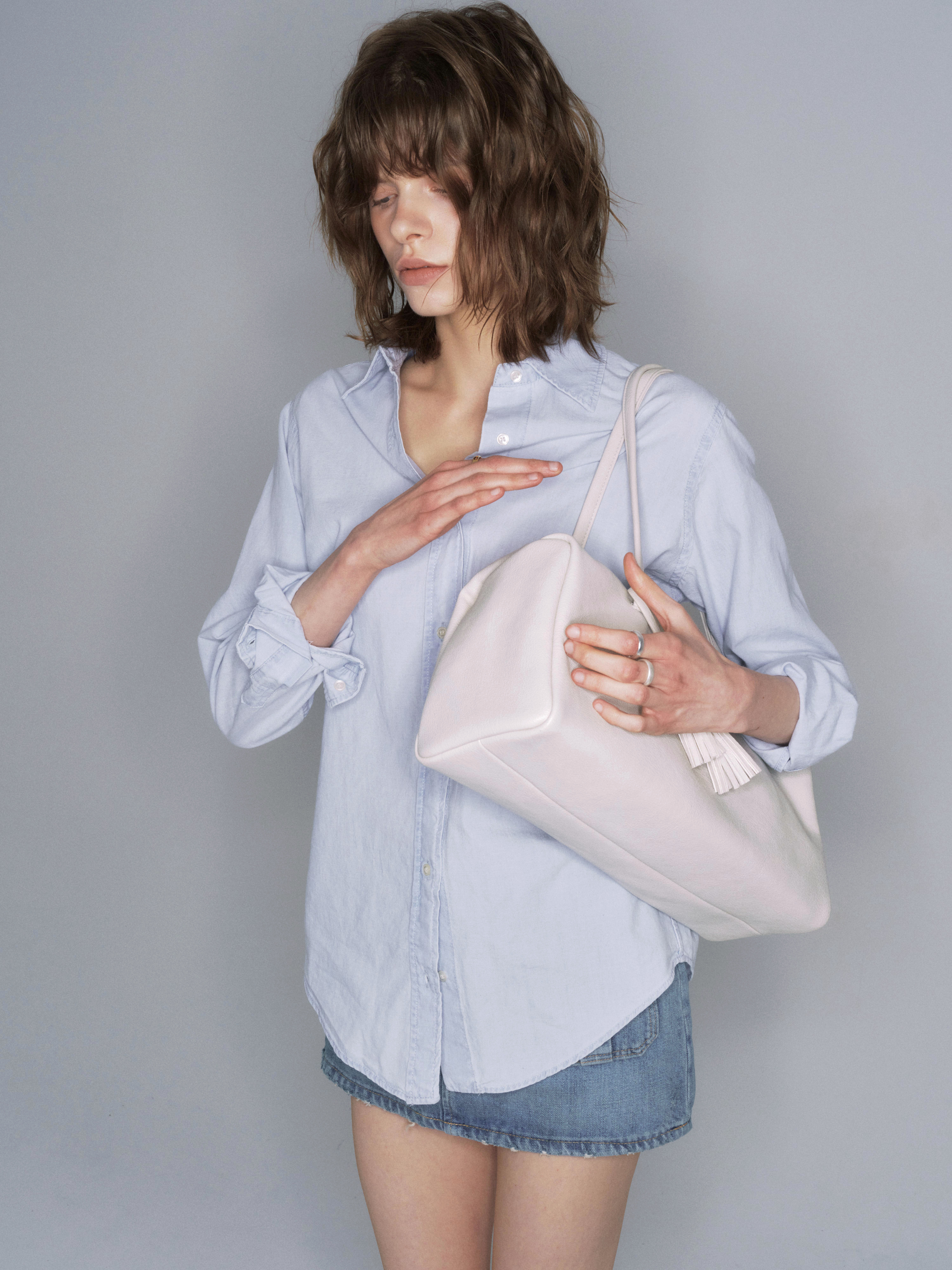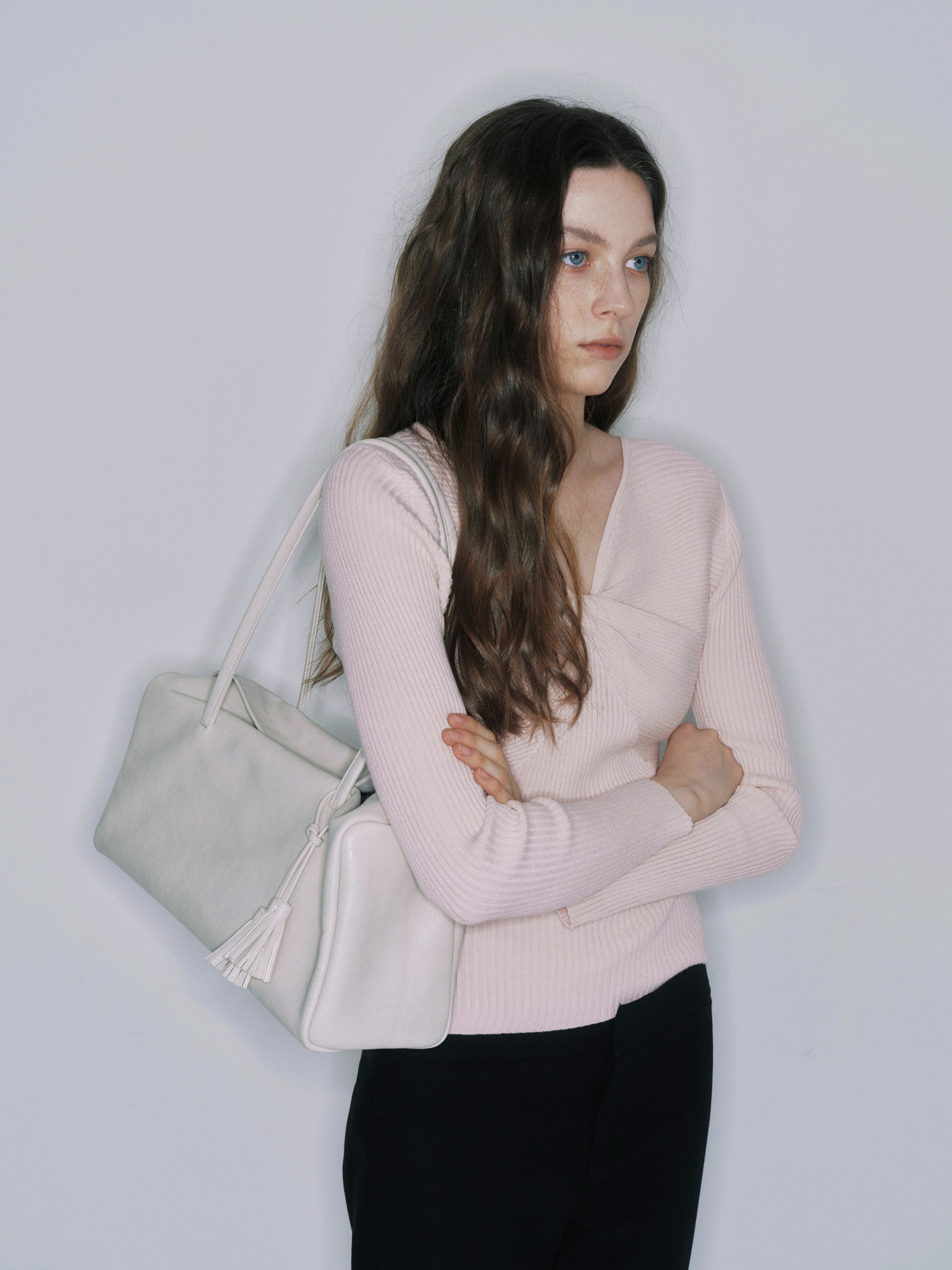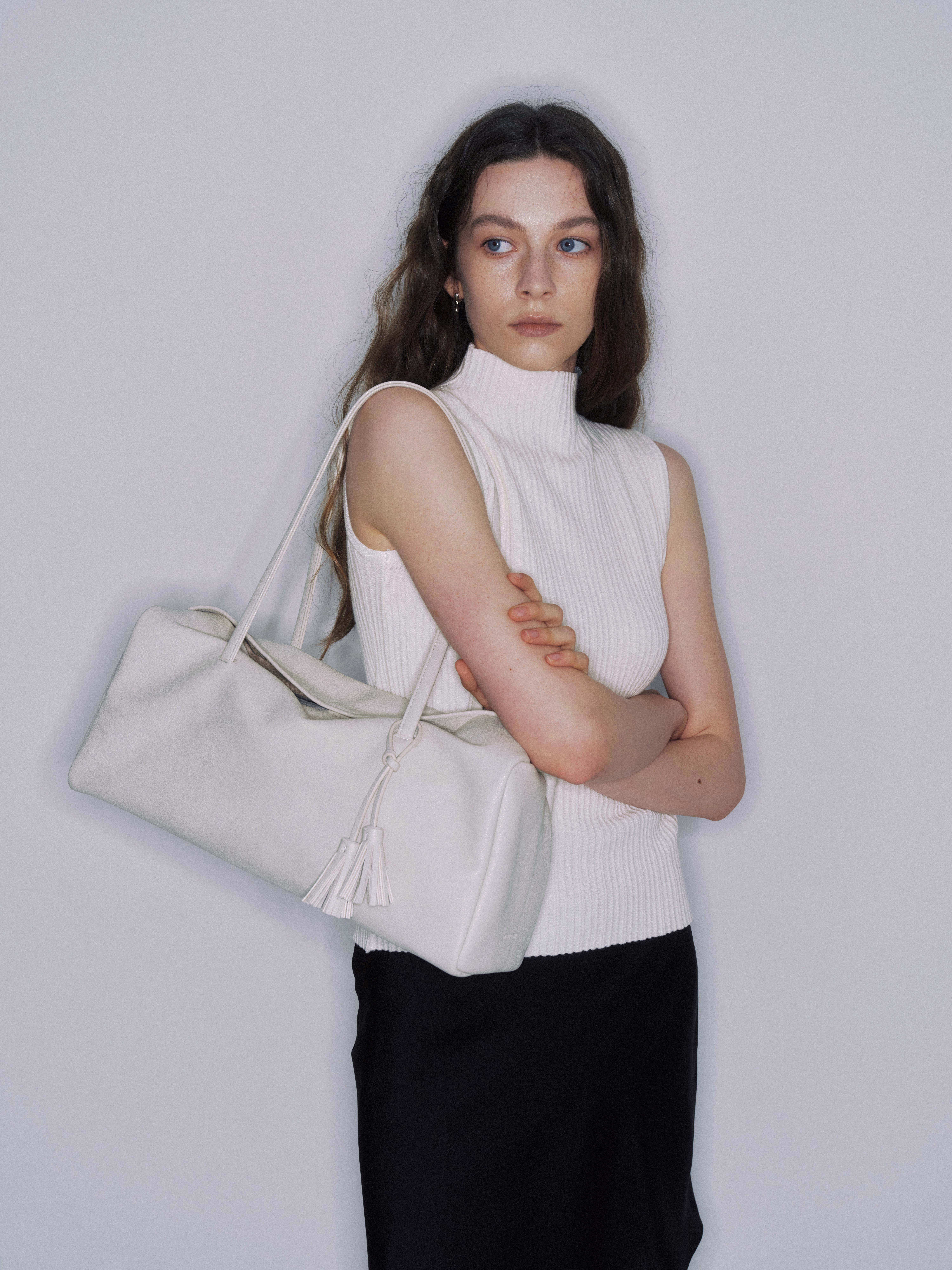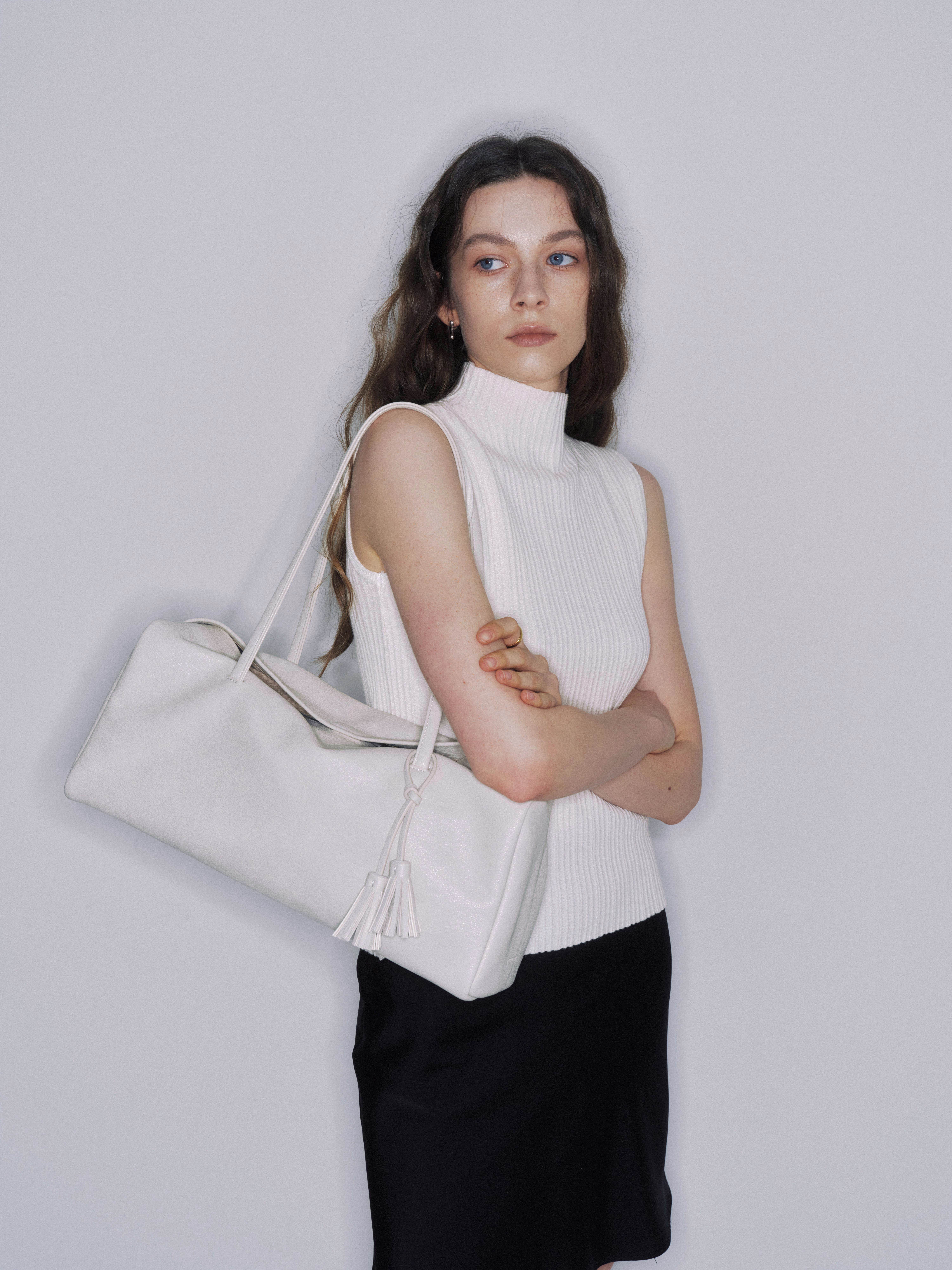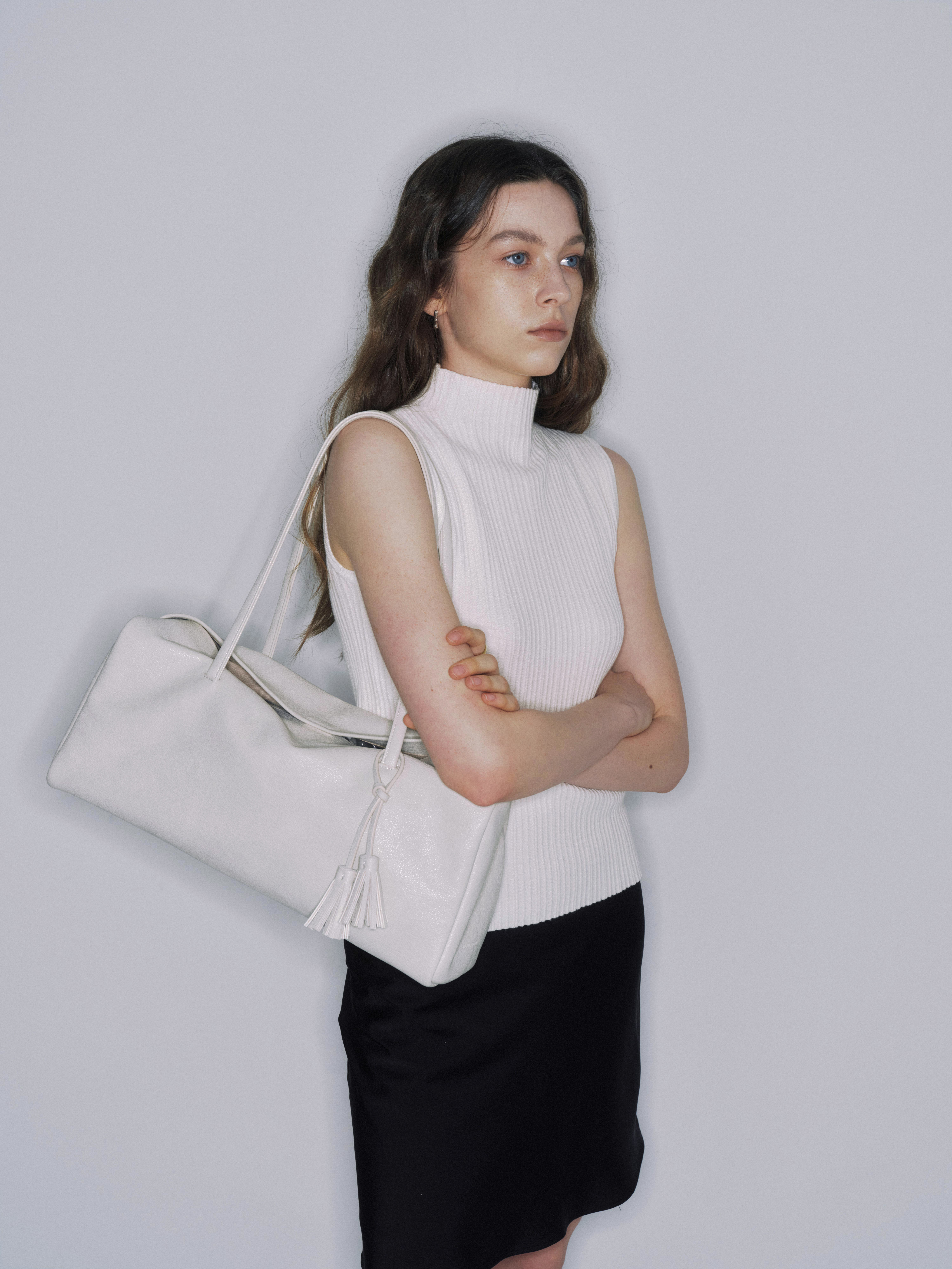 しなやかに落ちるボディと長めのハンドルは肩に自然になじみ、